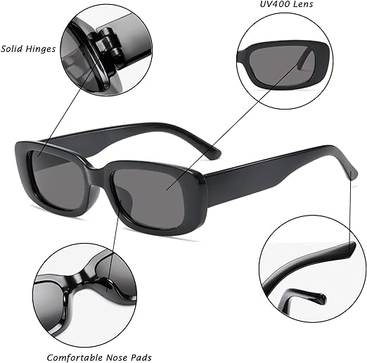 Retro Rectangle Sunglasses For Men and Women Premium With Metallic Lock